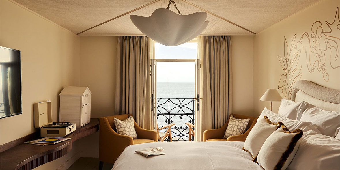 This, coupled with the traditional ice cream tricycle used to collect guests’ luggage from the station so they can enjoy the 10-minute seafront stroll, shows just how much care has gone into getting the breezy beach-club look and feel just right.